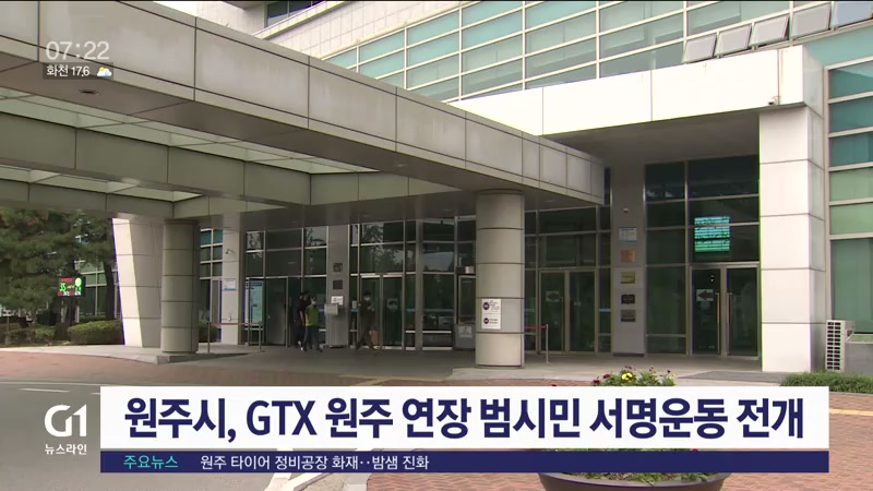 원주시가 수도권광역급행철도 GTX 노선의 원주 연장을 희망하는 시민들의 뜻을 모으기 위한 범시민 서명운동을 펼칩니다.