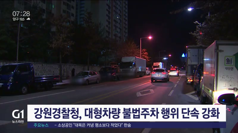강원경찰청이 야간에 불법 주차된 화물차로 인한 안전사고를 막기 위해 대형차량 불법주차 단속을 강화하기로 했습니다.