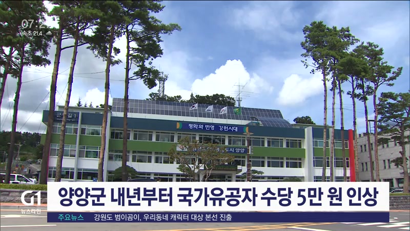 양양군 내년부터 국가유공자 수당 5만 원 인상