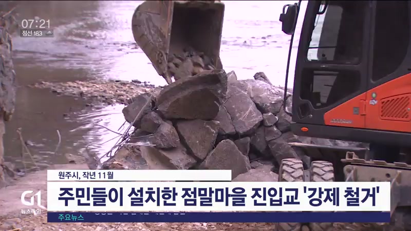 원주시는 작년 11월, 지정면 점말마을 주민들이 임시로 놓은 다리를 강제 철거했습니다.