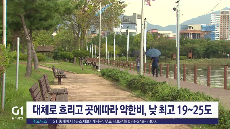 대체로 흐리고 곳에따라 약한비, 낮 최고 19~25도