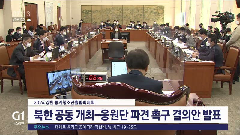 2024 강원 동계청소년올림픽대회 성공 개최를 위한 IOC와 정부, 북한의 대회 공동 개최와 선수단 참가를 촉구하는 결의안이 발표됩니다.