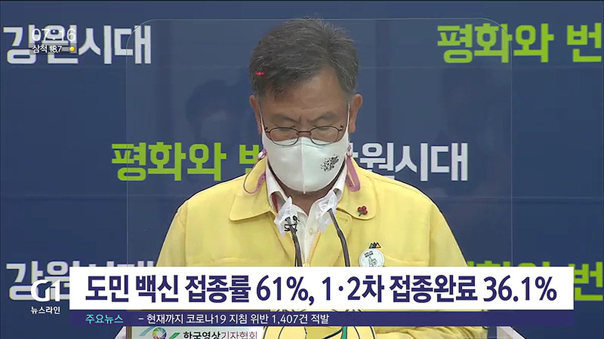 강원도에 따르면, 도내 백신 1차 접종자는 95만 4천여명으로 전체 대비 61.1%를 기록하고 있고, 1·2차 접종을 모두 마친 도민은 36.1%, 56만 4천여명으로 집계됐습니다.