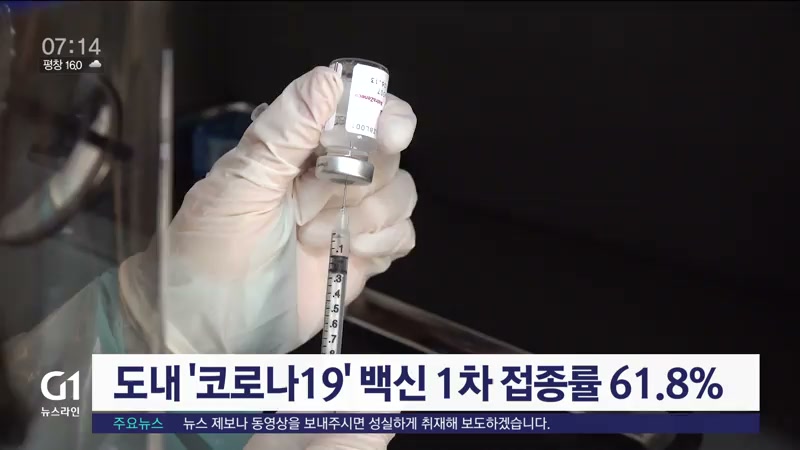 강원도에 따르면 6일 0시 기준, 도내 '코로나19' 1차 백신 접종률은 61.8%로, 전국 평균 58.4%보다 3.4%p 높은 것으로 조사됐습니다.