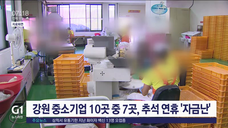 추석 연휴를 앞두고 강원도내 중소기업 10곳 중 7곳 정도가 자금난을 겪고 있는 것으로 조사됐습니다.