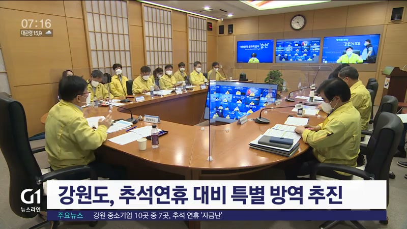 강원도는 18개 시·군과 공동으로 오는 26일까지 3주간을 '추석연휴 특별대책기간'으로 정하고, 경찰과 함께 취약시설을 중심으로 합동 방역 점검에 나설 예정입니다.