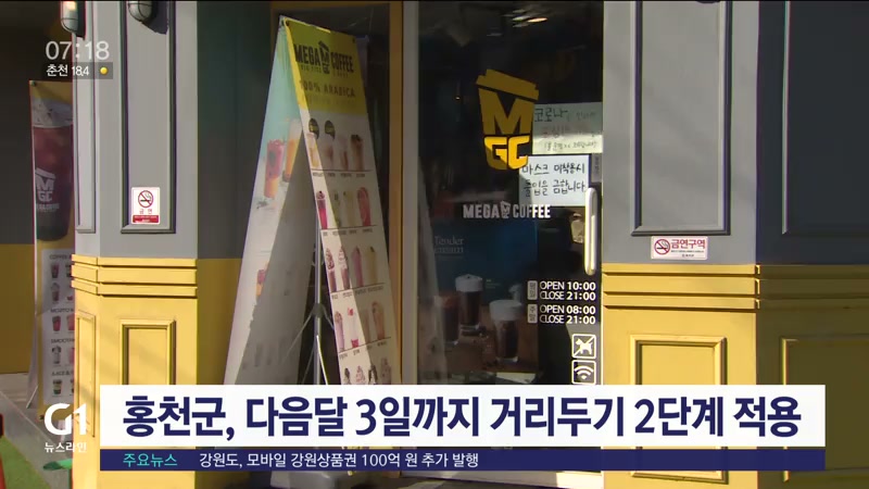 홍천군, 다음달 3일까지 거리두기 2단계 적용