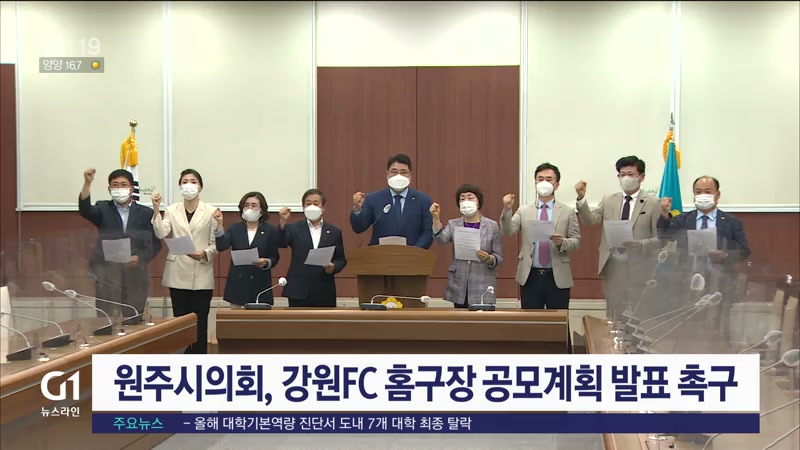 원주시의회 민주당 소속 의원 8명은 "원주시가 예산 절감과 접근성, 지역경제 활성화를 위해 강원FC 축구 전용경기장 건립 의사를 밝혔지만,