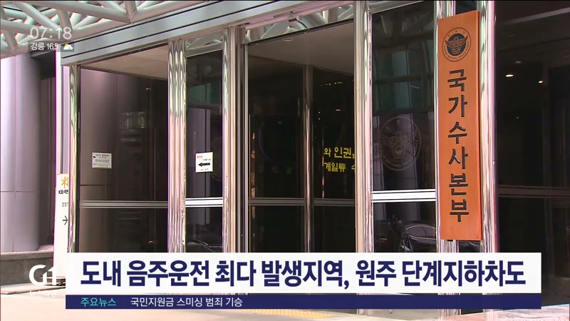 도내 음주운전 최다 발생지역, 원주 단계지하차도