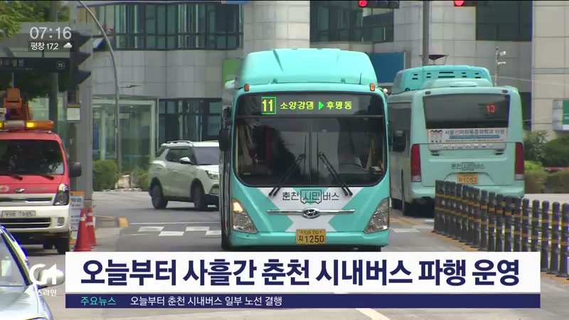 오늘부터 사흘간 춘천 시내버스 파행 운영