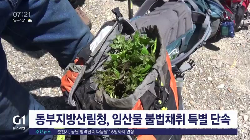 동부지방산림청은 다음달 31일까지 임업인 피해를 막기 위해 산림사범수사대를 편성하고 드론감시단과 임산물 불법 채취 단속을 추진합니다.