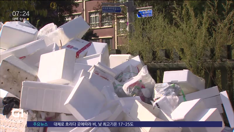 닷새 연휴 지났다고 골목 한구석에 거대한 쓰레기 산이 생겼습니다.