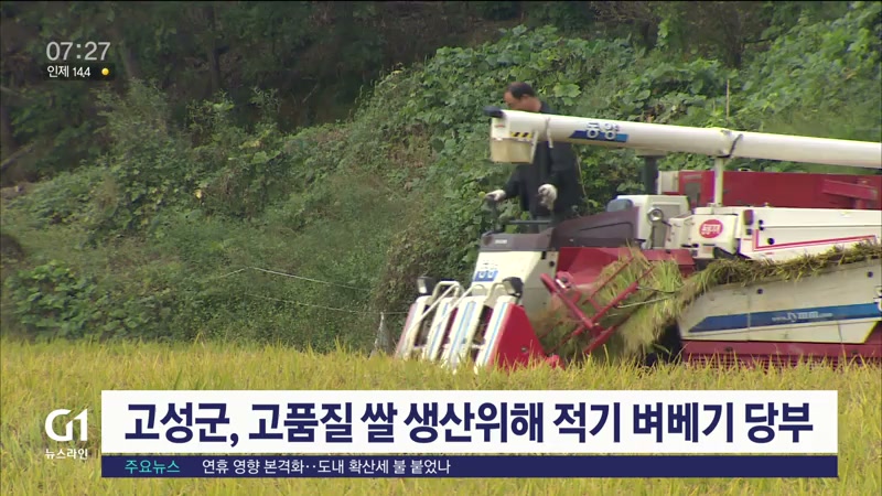 고성군이 고품질 쌀을 생산하기 위해 적기에 벼를 수확해 줄 것을 당부하고 나섰습니다.