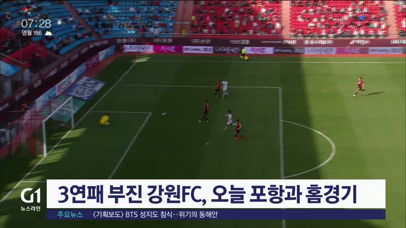 최근 3연패에 빠지면서 리그 꼴찌로 추락한 강원 FC가 오늘 포항과 홈경기를 치릅니다.