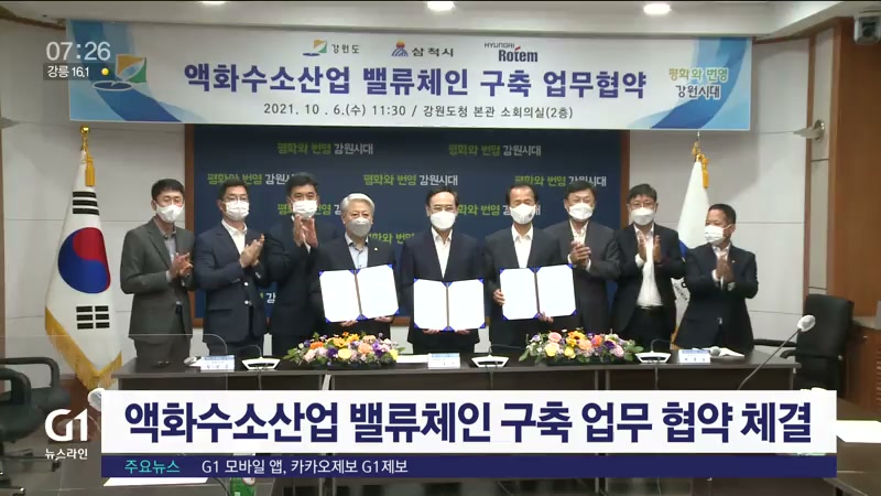 강원도와 삼척시, 현대로템은 강원도청에 '액화수소산업 밸류체인 구축을 위한 업무 협약'을 체결했습니다.