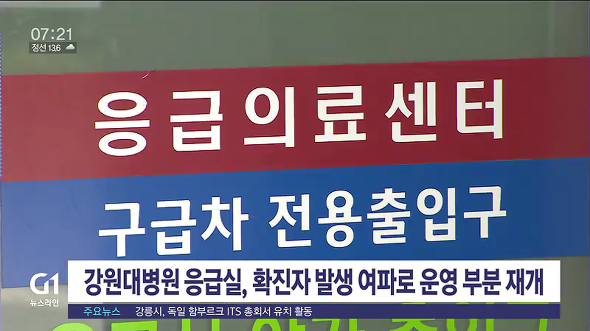 강원대 병원은 지난 수요일 응급실에 내원했던 환자가 '코로나19' 확진 판정을 받았고, 밀접 접촉한 의료진에 대한 검사 결과 간호사 1명이 확진돼 응급실 임시 폐쇄 후 직원 17명에 대한 자가격리를 진행했다고 밝혔습니다.