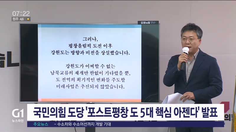국민의힘 강원도당 산하 강원미래연구원은 지난 1월부터 준비한 도당 핵심 정책 연구와 관련 지표를 담은 '포스트평창 강원도 5대 핵심 어젠다'를 발표했습니다.