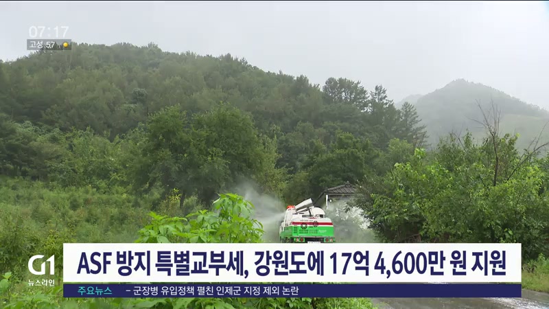 ASF 방지 특별교부세, 강원도에 17억 4,600만 원 지원