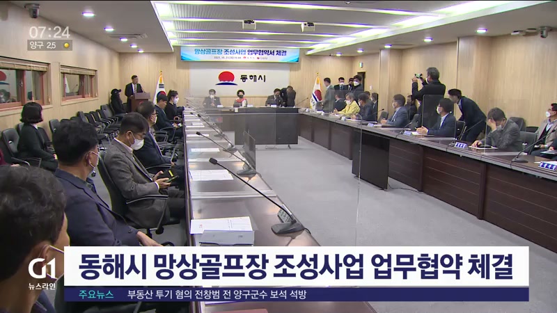 동해시는 어제(21일) 동해시청에서 주식회사 더 씨뷰와 망상 골프장 조성사업을 위한 업무협약을 체결했습니다.