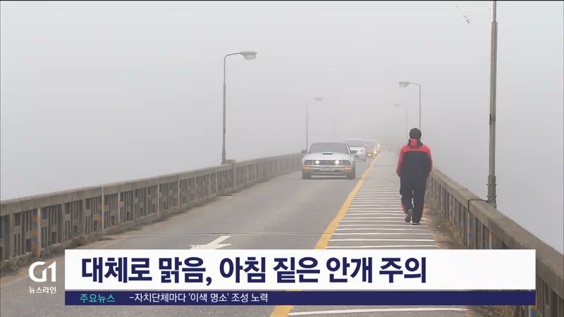 강원도는 오늘(25일) 대체로 맑겠고, 오전까지는 내륙과 산지를 중심으로 짙은 안개가 끼는 곳이 있겠습니다.