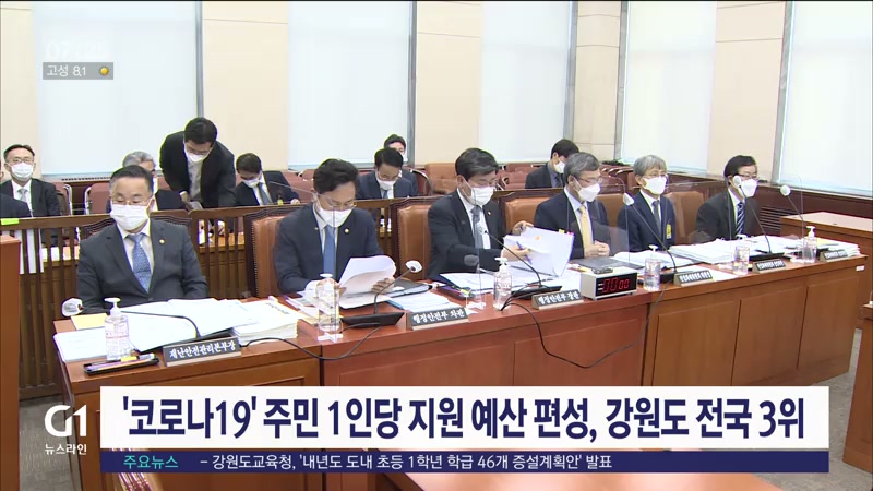 '코로나19' 발생 후 강원도가 편성한 도민 1인당 지원 예산액이 전국에서 세번째로 많은 것으로 나타났습니다.