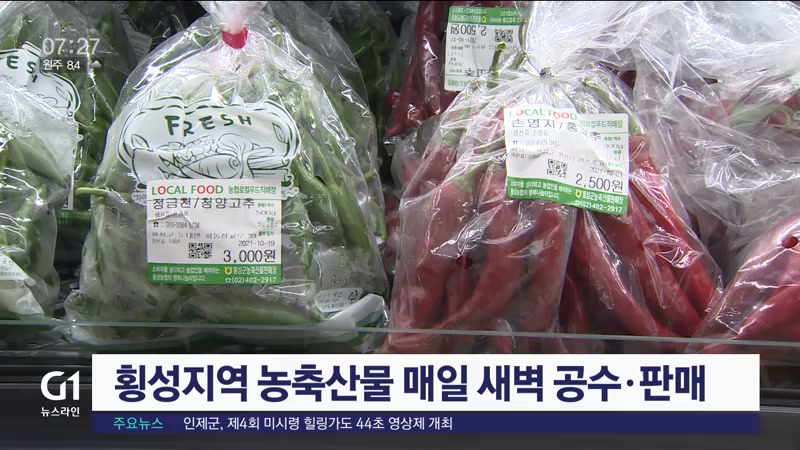 횡성지역 80여 농가들이 새벽에 출하한 농축산물을 싣고온 트럭들이 도착하고, 직원들은 서둘러 농축산물을 판매장에 옮기고 진열하느라 분주합니다.