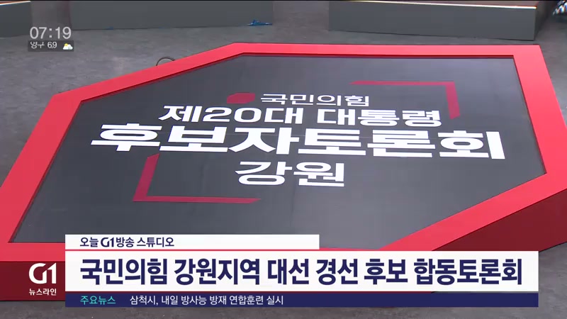 G1방송에서 열릴 이번 토론회에는 윤석열·원희룡·유승민·홍준표 등 4명의 후보가 강원도 발전 전략과 본선 경쟁력 등을 두고 치열한 혈전을 벌일 전망입니다.