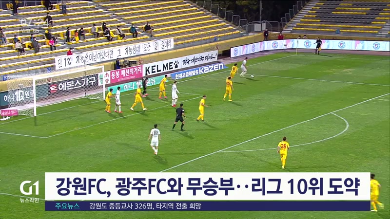 강원 FC, 광주 FC와 무승부..리그 10위 도약