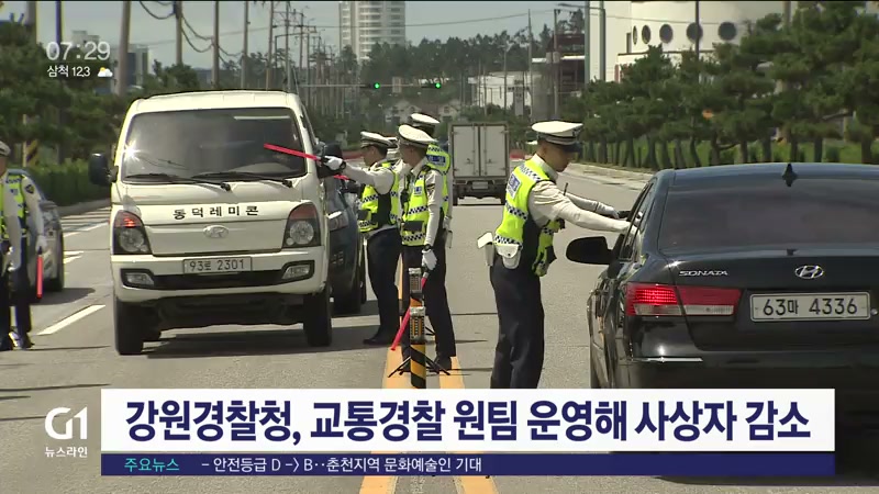 강원경찰청은 최근 두 달간 춘천과 원주 등 4개 지역에서 교통경찰 원팀을 운영한 결과, 도내 교통사고 사망자가 지난해 같은 기간보다 7명, 부상자는 141명 각각 감소했다고 밝혔습니다.