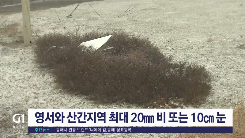 영서와 산간지역 최대 20㎜ 비 또는 10㎝ 눈