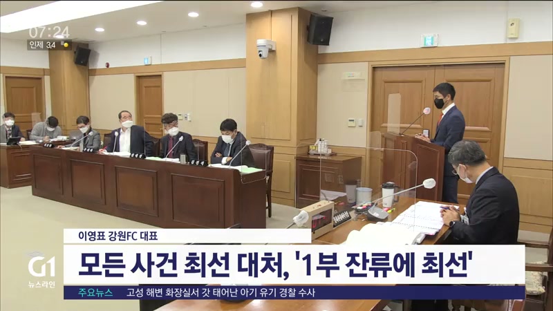 강원도의회 사회문화위원회 위원들은 문화관광체육국 행정사무감사에서 강원FC의 성적 부진과 감독 해임, 성폭행 사건 후속 대응 방안에 대해 어떤 해법을 갖고 있는지 물었습니다.