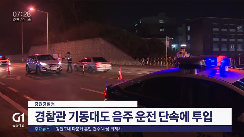 강원경찰청은 춘천과 원주에서 운영 중인 경찰관 기동대를 이번 달부터 음주 운전 단속에 투입해, 내년 1월말까지 밤낮을 가리지 않고 집중 단속을 벌이기로 했습니다.