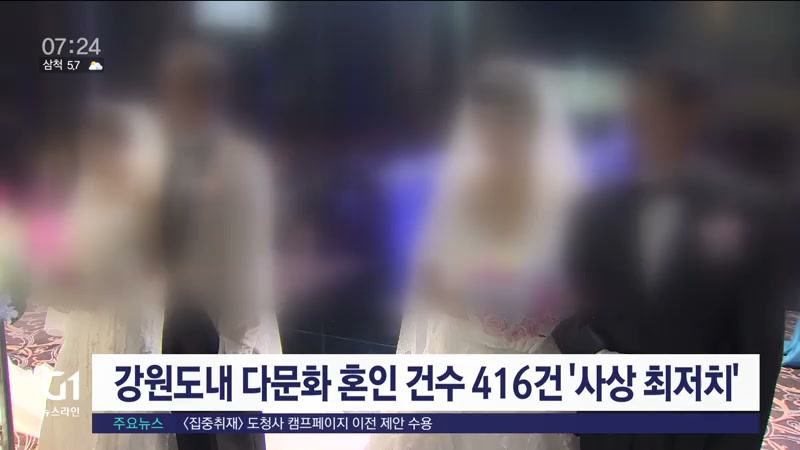 코로나19 사태가 발생한 지난해, 강원도내 다문화 혼인 건수가 사상 최저치를 기록한 것으로 나타났습니다.