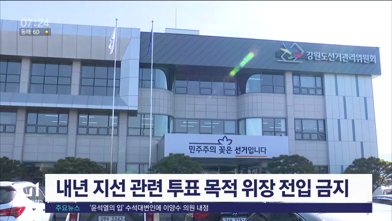 강원도선거관리위원회는 내년 지방선거를 앞두고 투표 목적의 주민등록 허위 신고 사례가 급증할 것으로 보고, 오늘(11일)부터 위장 전입 여부를 관리 감독하기로 했습니다.