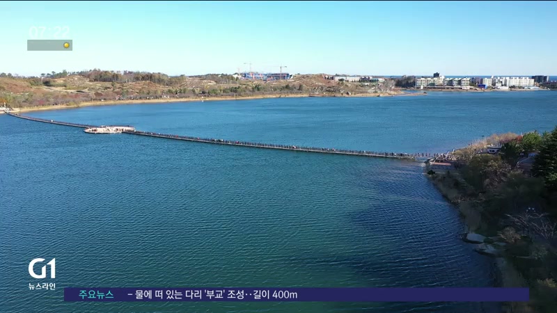 수려한 풍경을 뽐내는 영랑호에 호수를 가로지르는 길이 생겼습니다.
