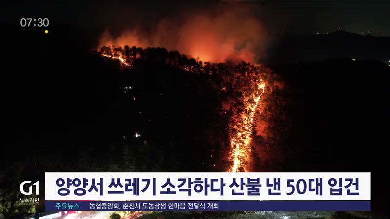 속초경찰서와 양양군청 산림특별사법경찰 등은 쓰레기를 소각하다가 산림을 태운 50대 주민 A씨를 산림보호법 위반 혐의로 붙잡아 조사 중이라고 밝혔습니다.