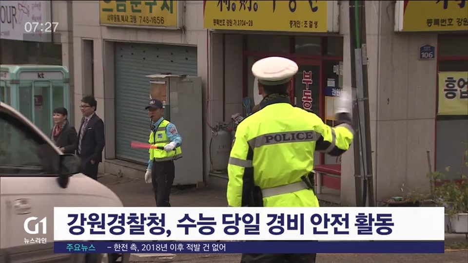 강원경찰청은 수능이 치러지는 내일(18일) 경찰관 1,300여 명과 순찰차 240여대 등을 동원해 시험장 일대 교통과 경비 활동을 지원합니다.