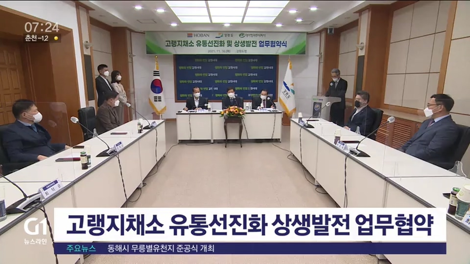 강원도와 호반그룹, 대아청과 주식회사는 도청에서 '고랭지 채소 유통선진화와 상생 발전을 위한 업무 협약'을 체결했습니다.