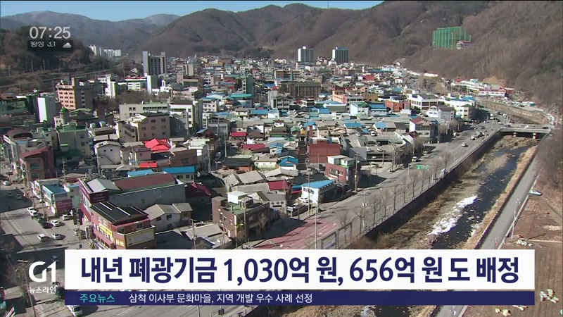 내년 폐광기금 1,030억 원, 656억 원 도 배정