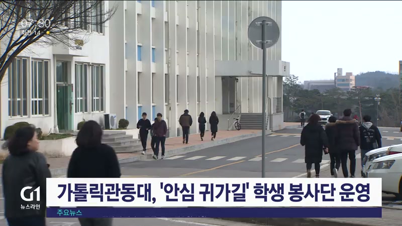 가톨릭관동대가 학생들로 구성된 '안심 귀가길 조성' 봉사단을 운영합니다.