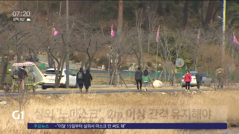 "산책이라든지, 등산이라든지. 옆에 계신 분들한테 방해가 되지 않는다면, 실외에서도 마스크를 착용 안하셔도 된다."