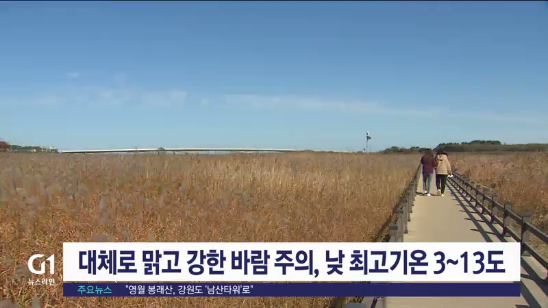 대체로 맑고 강한 바람 주의, 낮 최고기온 3~13도