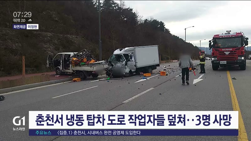 춘천서 냉동 탑차 도로 작업자들 덮쳐..3명 사망