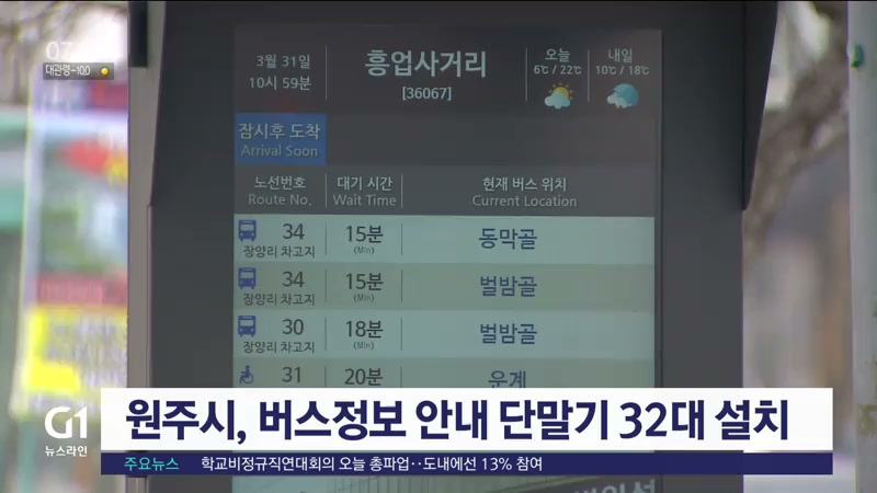 원주시, 버스정보 안내 단말기 32대 설치