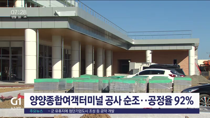 양양군은 양양읍 송암리 일대에 추진 중인 종합여객터미널 신축공사가 92%까지 진행됐다며 내년 1월 공사를 마무리한 후 7월부터 운영한다고 밝혔습니다.