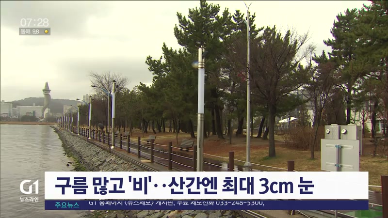 구름 많고 '비'..산간엔 최대 3cm 눈