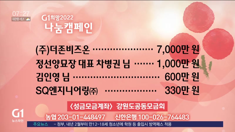 Copyright ⓒ G1방송. All rights reserved. 무단 전재 및 재배포 금지.