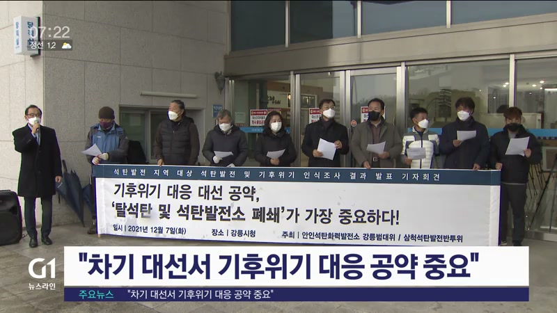 석탄발전을 반대하는 강릉과 삼척지역 시민단체가 강릉시청 앞에서 기자회견을 열고 기후 위기 대응을 대선 의제로 채택해야한다고 주장했습니다.