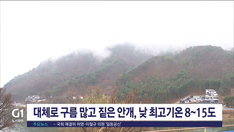 대체로 구름 많고 짙은 안개, 낮 최고기온 8~15도