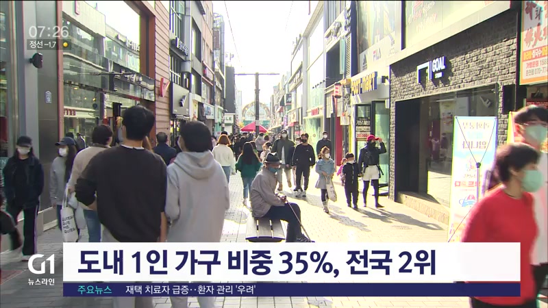 도내 1인 가구 비중이 전국에서 두번째로 높은 것으로 나타났습니다.